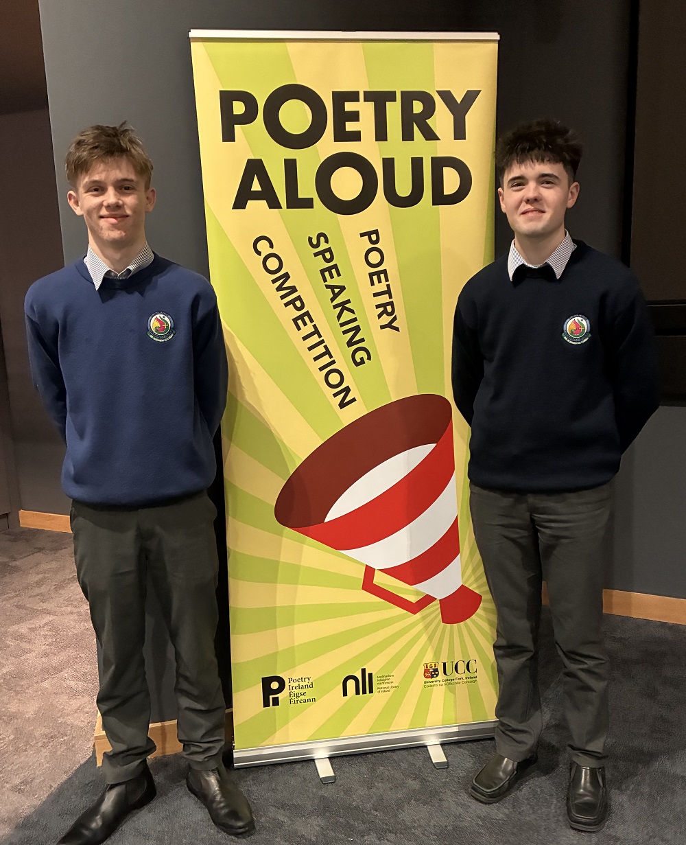 Congratulations to Shay Collins and Evan Fahey, who took part in the Poetry Aloud Competition on 21st November in the National Library of Ireland, Dublin. They are now through to the final on December 12th.