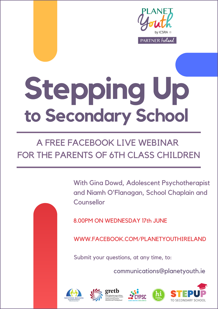 This is an event that has been organised for the parents of 6th class children and it will give you some useful information on how to support your child over the summer and assist them in getting ready for their school transition. Niamh and Gina will be covering a lot of the frequently asked questions that parents often ask.