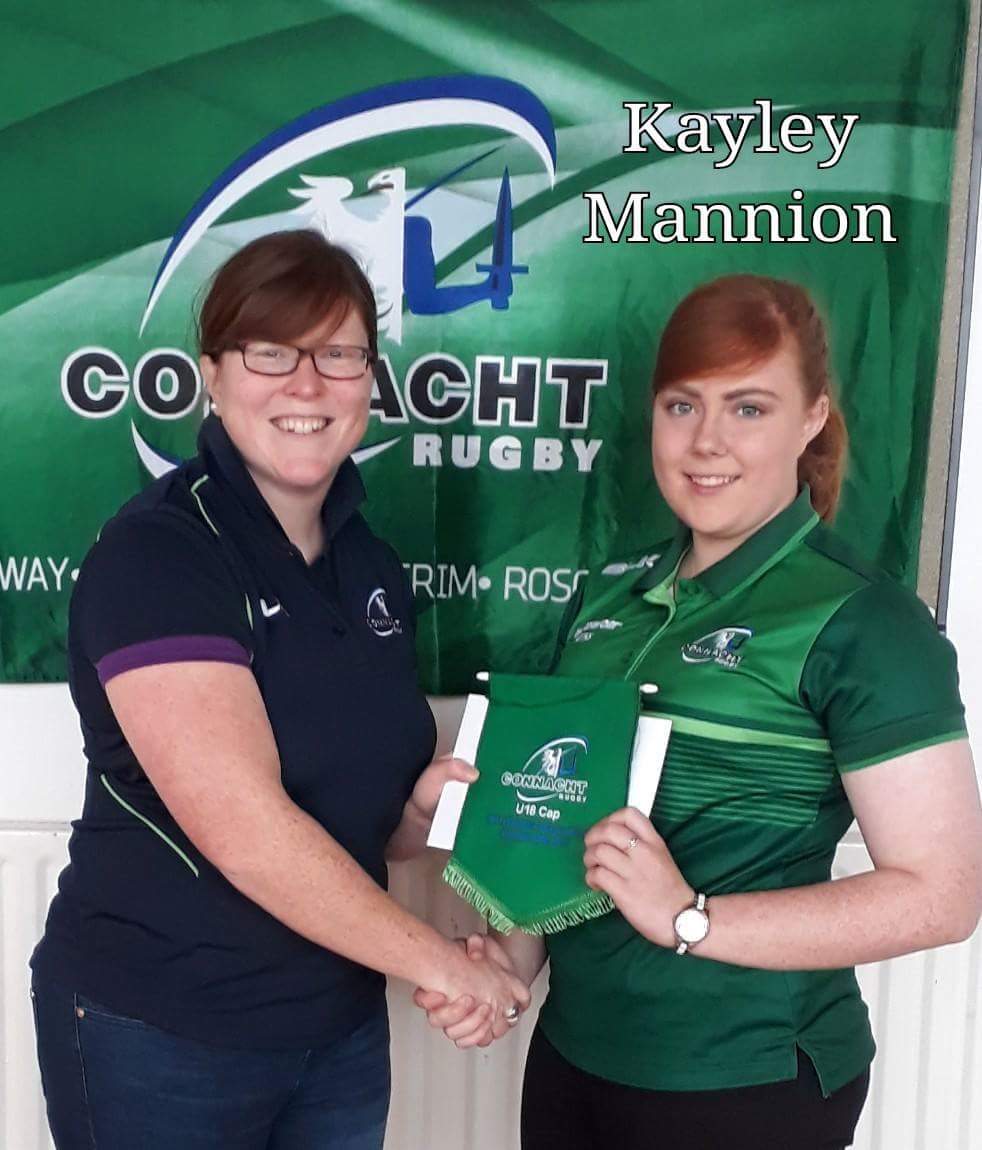 Kayley Mannion, 6th year student in GCS receiving her u18 Connacht Ladies Rugby Cap. She has played over the course of the summer in the inter-pros, against Leinster, Munster, and Ulster.