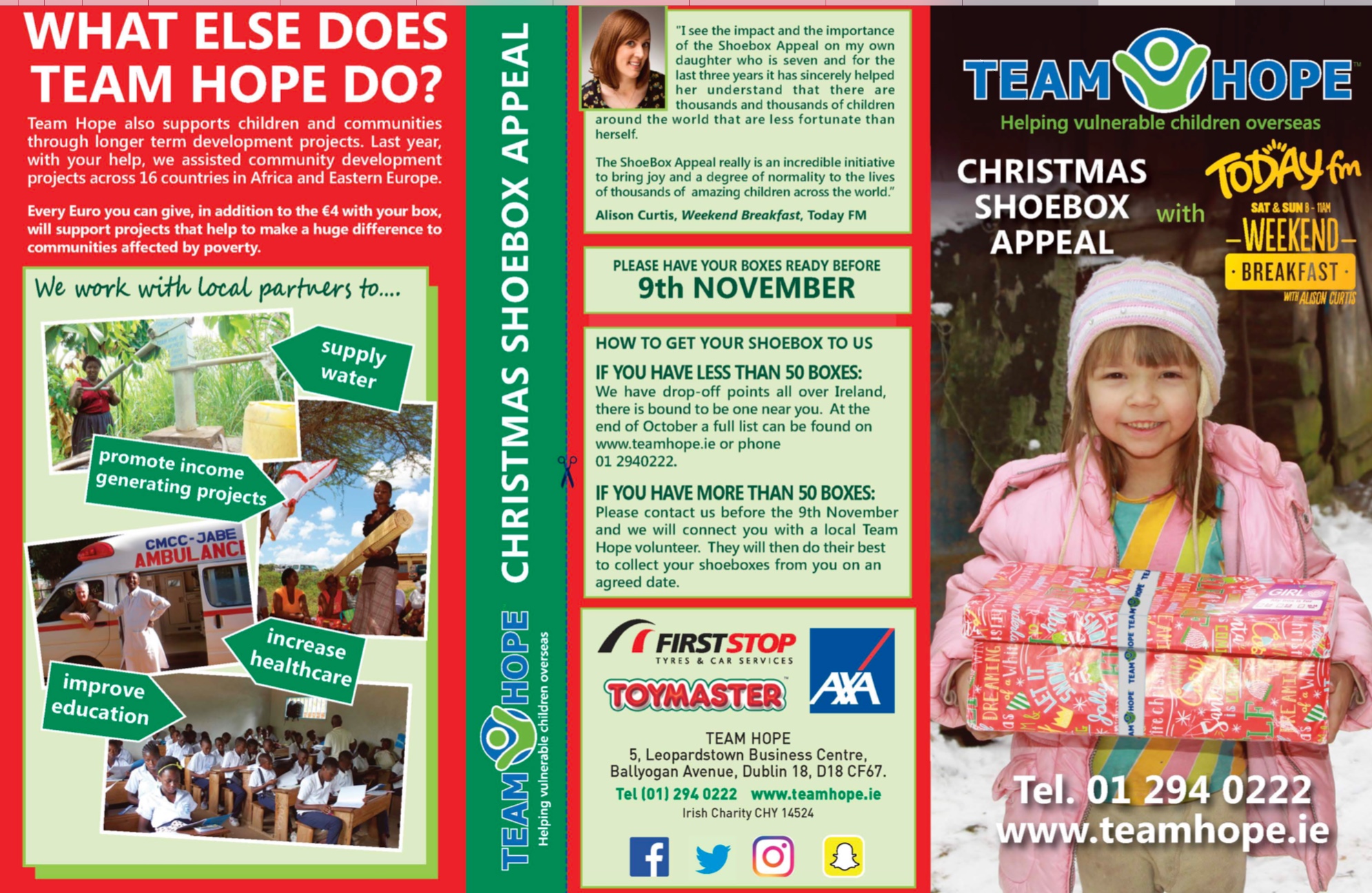 All 1st and 2nd year students are invited to participate in the Teamhope Shoebox appeal. We will be giving out leaflets in 1st & 2nd year R.E classes over the coming week. There will some extra leaflets left in the school office so that students from other year groups are also encouraged to contribute. Looking forward to a great response again this year!! Thanks in advance to all the parents/ guardians for their ongoing support and generosity.