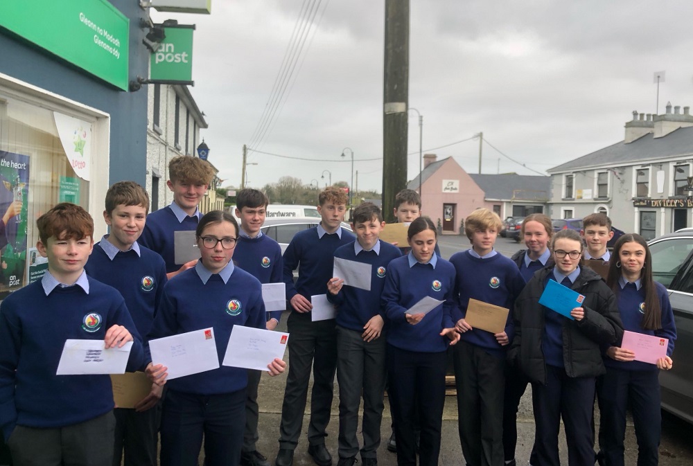 Céad Bhliain ag seoladh Cártaí na Nollag dá Seantuismitheoirí ag Oifig an Phoist