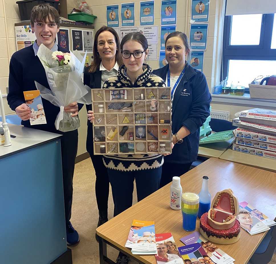 Pictured here is Ms. Lynn with students Evelynn Geoghegan an & Oisin Keaveney (5th years) presenting flowers to Kathryn Murphy, a nurse with the Marie Keating Foundation wiho visited our school this week to speak to all TY, 5th and LCA students, as part of our wellbeing programme. The Marie Keating Foundation Schools Cancer Awareness Programme aims to help secondary school students learn how to reduce their risk of cancer and how to spot the signs and symptoms early. The programme makes cancer ‘less frightening by enlightening". Kathryn used age-appropriate, interactive and informative material. We are very grateful to all who helped to facilitate these important talks.