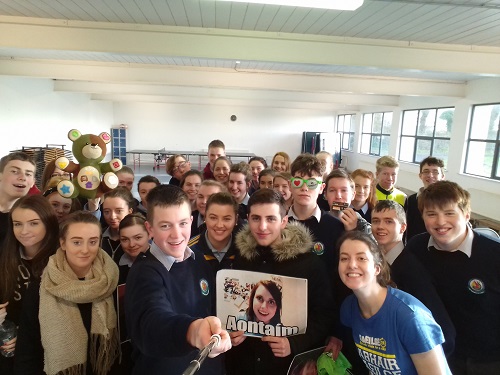 'Buail an t-iarann te' mar a deirtear as Gaeilge. The 5th years recently had a workshop organised by the Irish Dept and Conradh na Gaeilge. This workshop informed students about possible careers with teanga na Gaeilge. Niamh Ní Ghoill travels from school to school with an Seó Bóthair and challenges students to think, speak and debate as Gaeilge. She informed students about the number of people that speak Gaeilge daily and also the growth in resources for learning the language (féach ar an teidí a labhraíonn Gaeilge). In addition to this she quizzed the students on their knowledge of text language 'as Gaeilge! Ba cheardlann den scoth í.